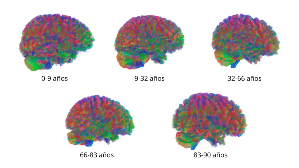 El cerebro humano no crece en línea recta, sino que parece pasar por fases definidas a lo largo de la vida. Un estudio reciente de la Universidad de Cambridge, que analizó resonancias cerebrales de personas de entre 0 y 90 años, sugiere que hay cinco momentos claves en esa evolución. Estos saltos suelen ocurrir cerca de los 9, 32, 66 y 83 años y en cada uno se producen transformaciones en la forma en que las neuronas se conectan internamente.